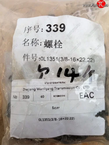 | Наименование | Болт 38-16х22.22 поддона C6121 SHANGHAI 0l1351 в Екатеринбурге Свердловской области |
